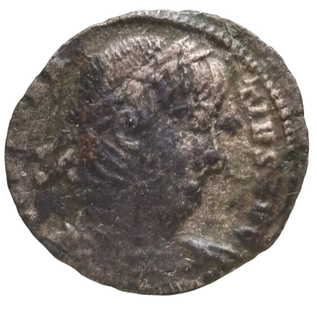 This bronze AE4 follis from the reign of Valentinian II (AD 375–392) is a compact but compelling piece of Roman numismatic history. Struck at the Antioch mint, it offers a striking glimpse into the iconography and messaging of the late Roman Empire.